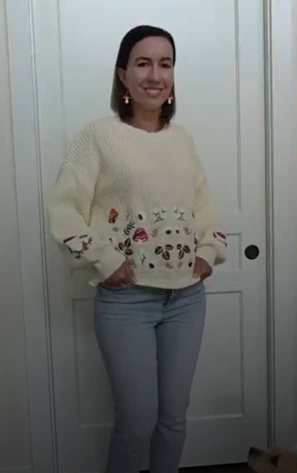I ordered these earrings to go with the cute mushroom sweater, and they also did not disappoint. They are lightweight and comfy to wear, and I’ve worn them every time I’ve worn this sweater with no issues.